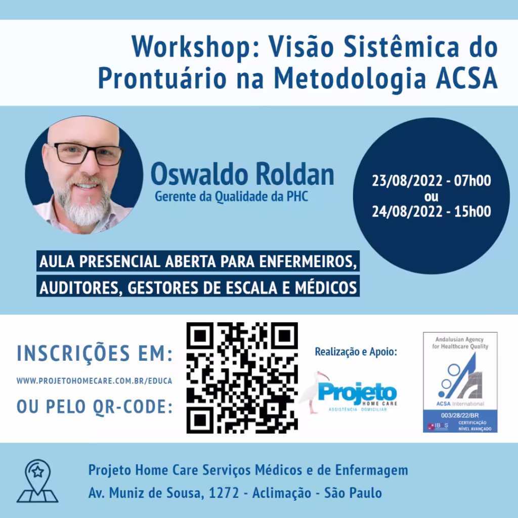 Workshop Nos últimos dias 30 e 31 de agosto realizamos o workshop: Visão Sistêmica do Prontuário na Metodologia ACSA. As